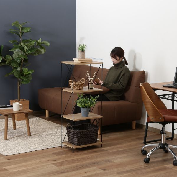 ●材質:構造部材(フレーム)/金属(鋼)、表面加工(フレーム)/エポキシ樹脂塗装、表面材(棚板)/プリント紙化粧パーティクルボード