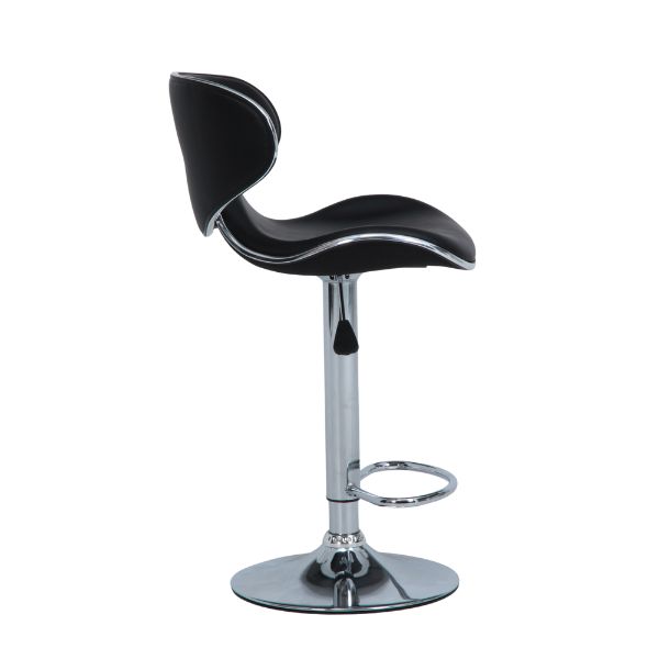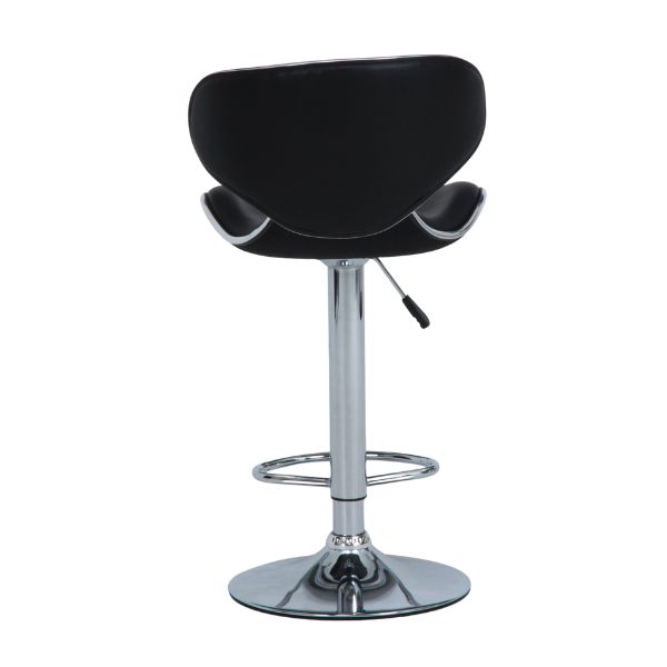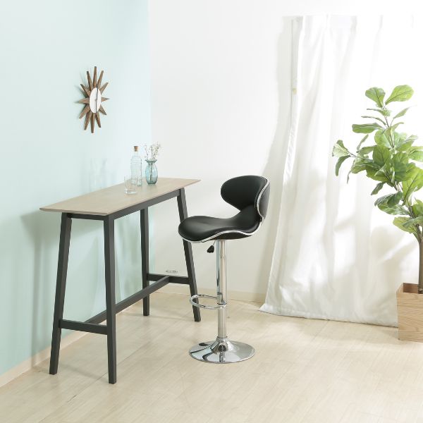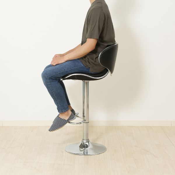 レバーで高さ調節(61?82cm)が可能な360度回転式座面とフットレスト付きのチェアは、撥水性のあるPUレザーを使用し、汚れに強くお手入れも簡単。