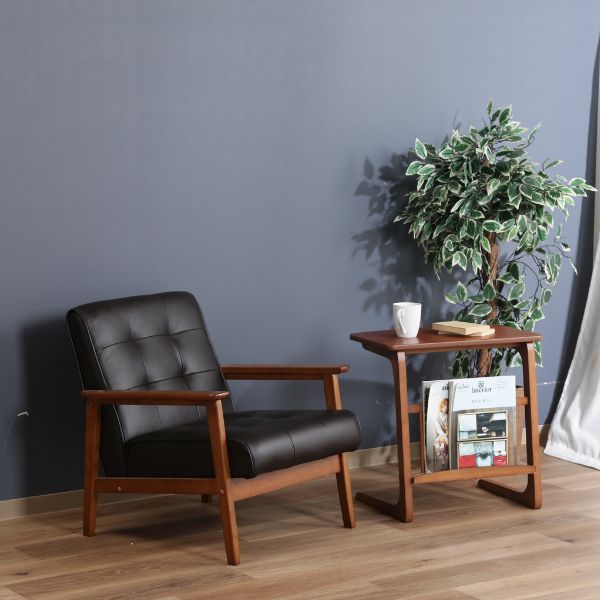 ●材質:構造部材:天然木/張り材:合成皮革(PU)/クッション材:ウェービングベルト/ウレタンフォーム/背面:ウレタンフォーム/脚部:天然木(ラバーウッド)