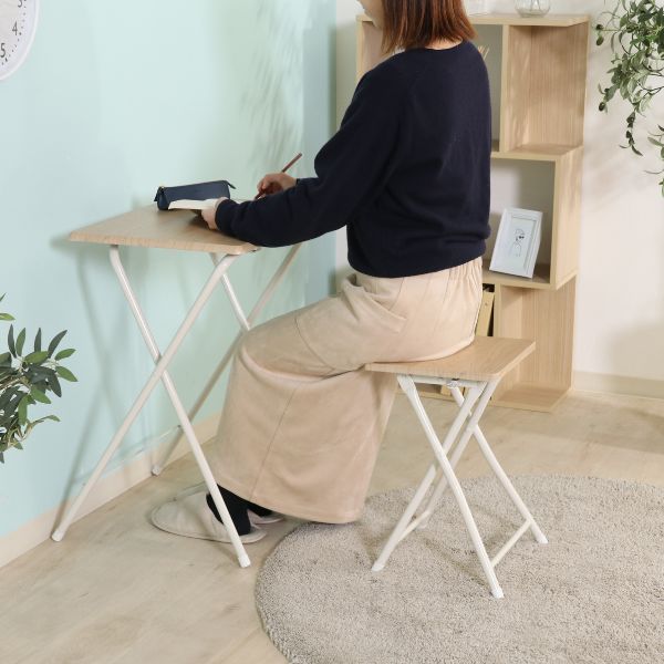 パタッと折りたためて省スペースに収納できるコンパクトなテーブル&チェアセットは、カウンセリングや書き物、PC作業などにちょうど良いサイズ感。