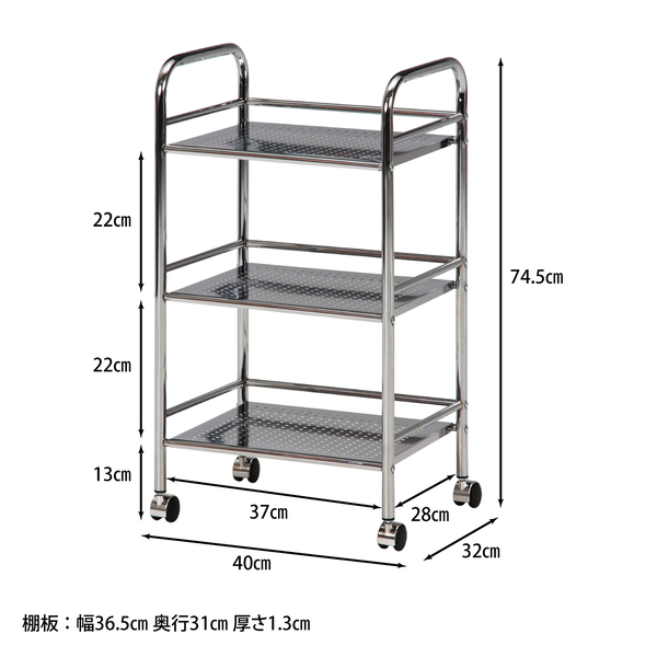 ●サイズ:全体/幅400mm × 奥行320mm × 高さ745mm、棚板サイズ/365mm x 310mm x 13mm