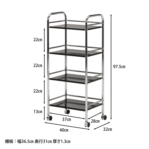 ●サイズ:全体/幅400mm × 奥行320mm × 高さ975mm、棚板サイズ/365mm x 310mm x 13mm