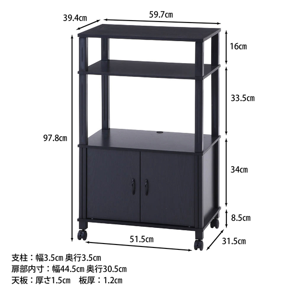 ●サイズ:幅597mm × 奥行394mm × 高さ978mm、天板厚み/15mm、棚板厚み/12mm、扉部内寸/445mmx305mm