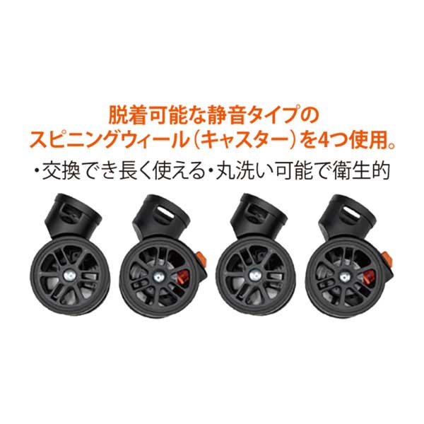 脱着可能な静音タイプのスピニングウィール(キャスター)を4つ使用。