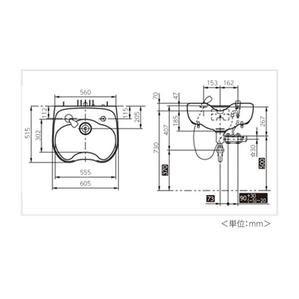●仕様:混合水洗(ワンコック式)、サーモスタット付