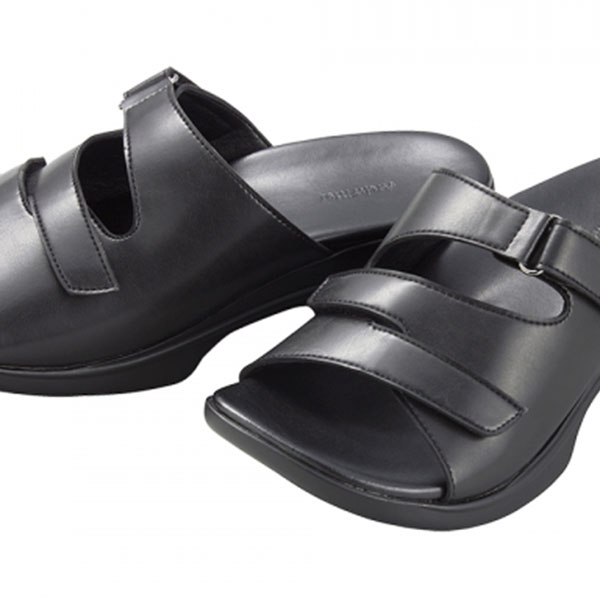 甲部ベルトは2つの面ファスナーで調整が可能なため、甲高・幅広の方でも安心してはける。