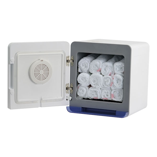 スタイリッシュで省スペース設計ながら庫内容量は8Lと、おしぼりサイズを約30本(34×90cmタオルなら約12本)収納可能。