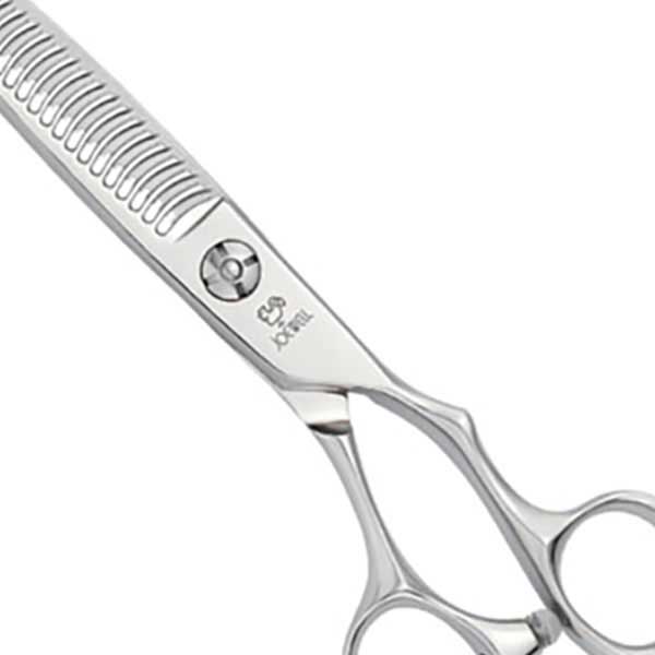 櫛刃先端部の段差でカットするため、髪の毛をしっかりとらえながらも、引っかかりにくく抜けが良く、スムーズな切れ味で安定した毛量調整が可能。