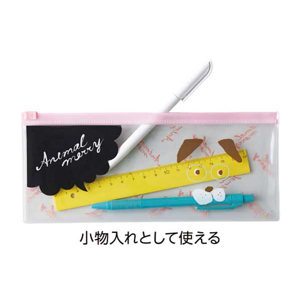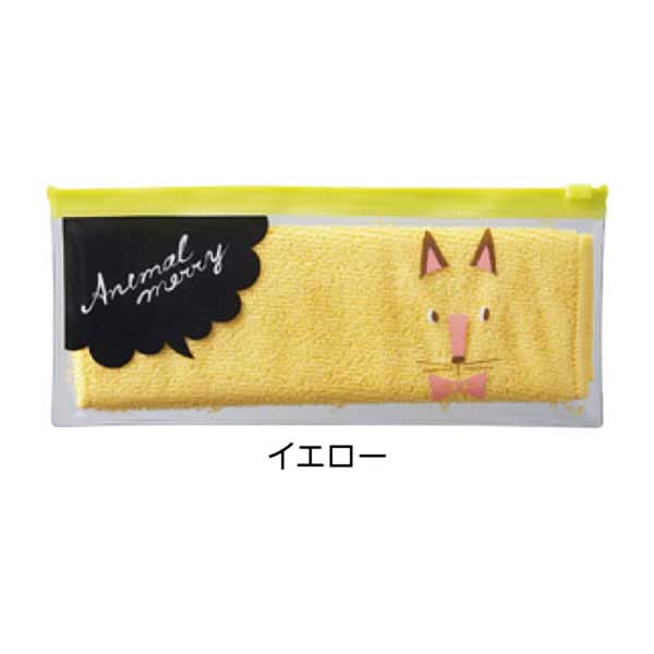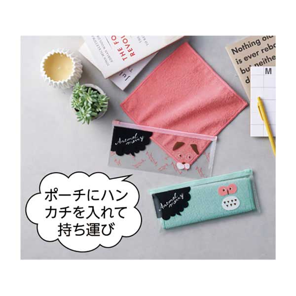 便利なスライドポーチでかわいいアニマルのハンカチタオルを携帯。
