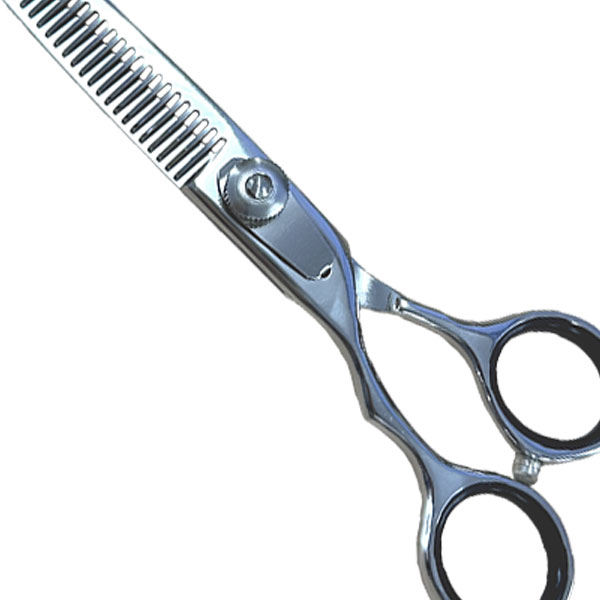 カット率約20%の左利き用セニングシザー。全体の毛量調整に適したスタンダードタイプ。