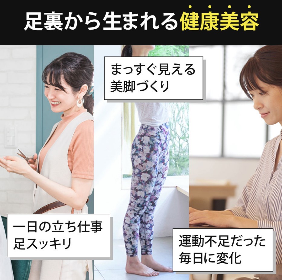 土踏まずのアーチが崩れていると、体全体のバランスが悪くなって、歩行時に踏ん張りが効きづらくなり、むくみやずん胴体形の原因にも。