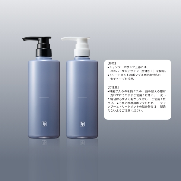 ・それぞれ専用ポンプのため、シャンプーとトリートメントの詰め替えは 間違えないようご注意ください。