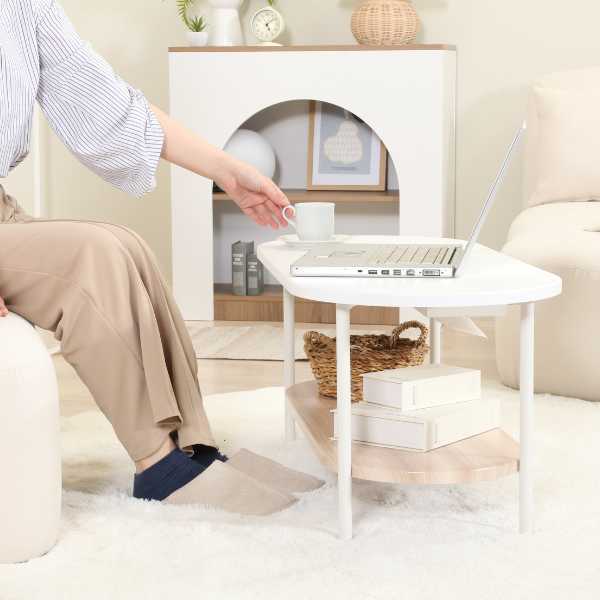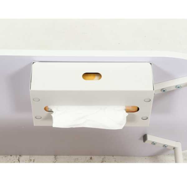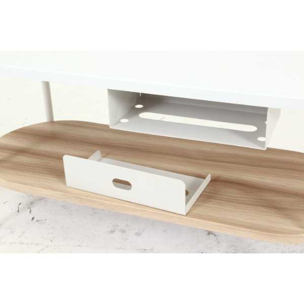 ●素材:構造部材(天板・棚板):合成樹脂化粧繊維板(MDF)、構造部材(脚部・ティッシュ収納):金属(鋼)、表面加工(脚部):粉体塗装(エポキシ樹脂塗装)