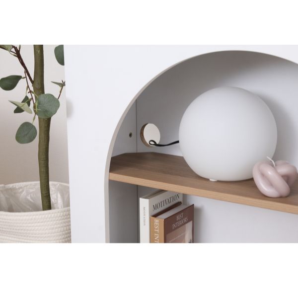 ●サイズ:幅80×奥行25×高さ80cm、棚板上段:W760xD220xH411mm、/棚板下段:D760xD220xH304mm、コード穴:直径60mm、前扉(アーチ部分):W600xH633mm