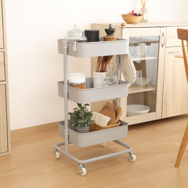 ネジいらずでクイック組み立て! バスケットの高さを調整できるトローリーワゴン