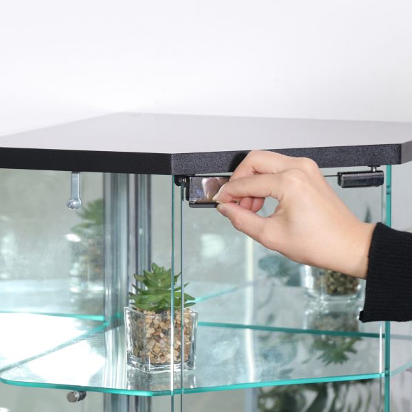 スペースを活用したコーナー型卓上ガラスコレクションケース