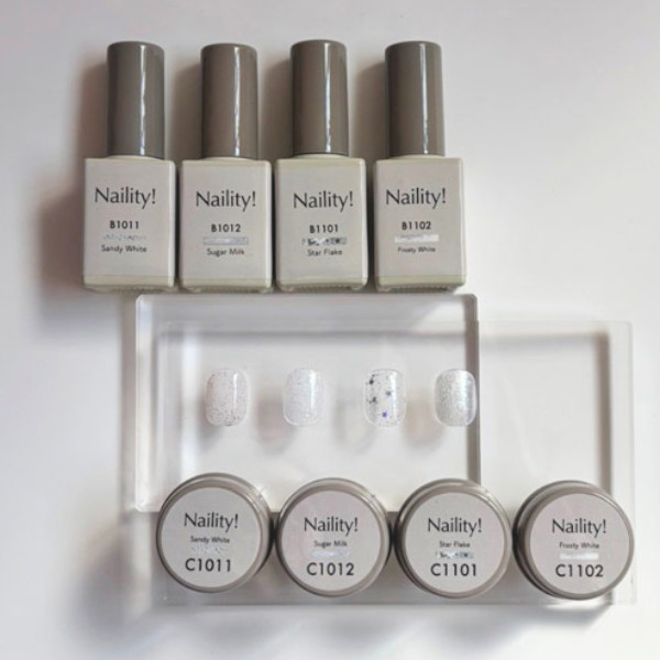 クリアにホワイトシルバーの微細ラメをふんだんに散りばめた、繊細な輝きのカラー。