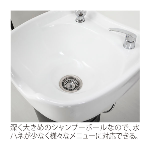 深く大きめのシャンプーボールなので、水ハネが少なくさまざまなメニューに対応できる。