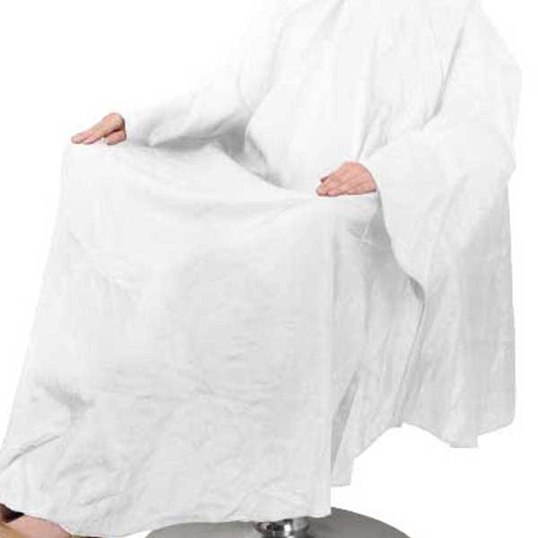 特別仕様の袖長タイプのカットクロス。袖口が深いので、カットした毛が袖口から入らず、お客様に不快な思いをさせない。