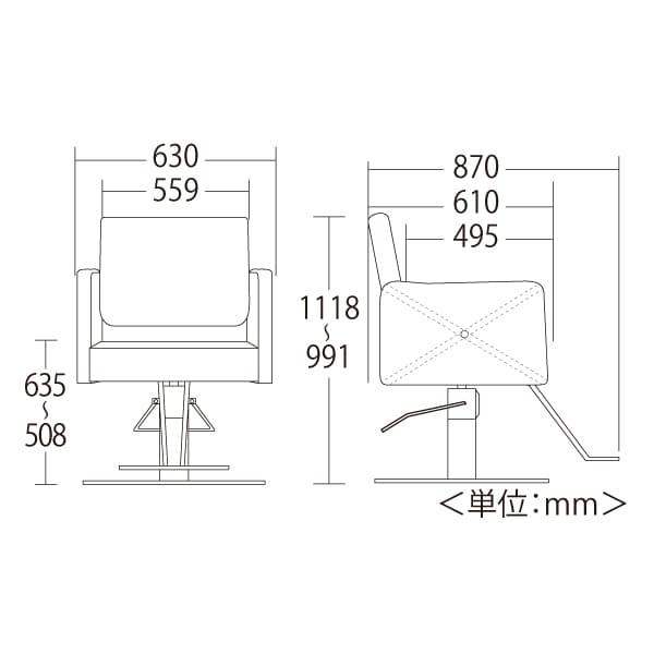 ●サイズ:全体/幅630mm × 奥行870mm × 高さ991~1118mm