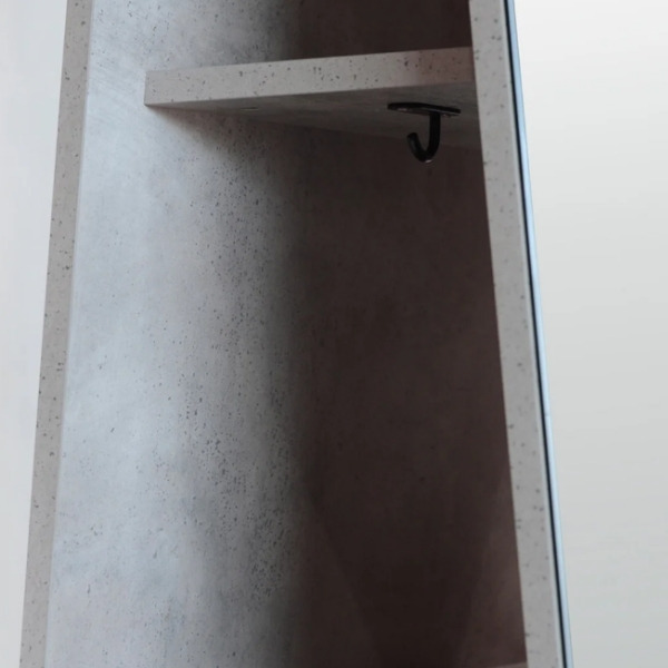 ドライヤーフック付きで、少し奥まった位置にあるため、掛けたときに外から見えにくい設計。