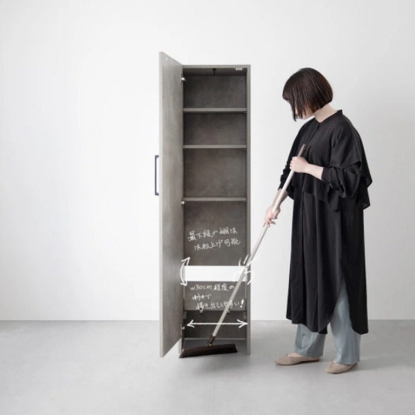 ・棚は可動式のため、高さや段数を調整することで大きめのごみ箱やちり取りも収納可能。