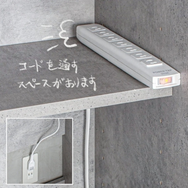 ・延長コード電源タップを使用し、BOX内でバリカンやタブレット端末の充電が可能。