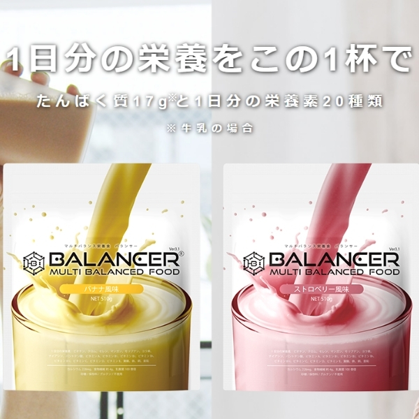 コップ1杯で20種類の栄養1日分をしっかり摂れるバランサープレーン風味。