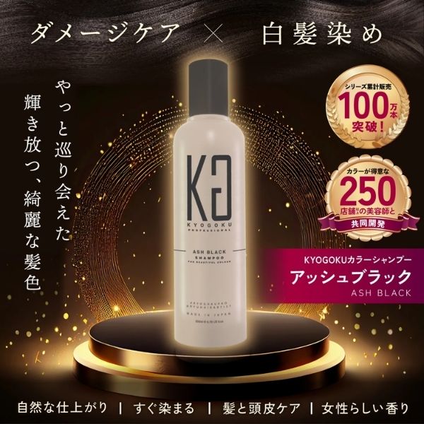 洗うたび白髪が染まるアッシュブラックカラーシャンプー(※髪の表面に一時的に着色)