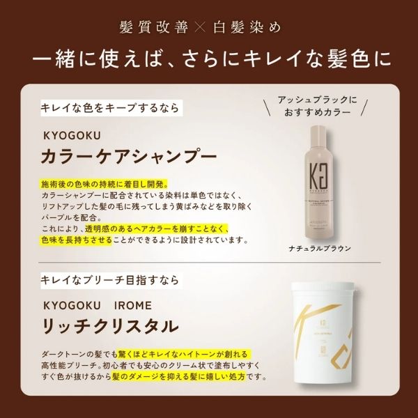 伸びのいいテクスチャで失敗しにくい。白髪も透明感あふれるキレイな髪色になる。