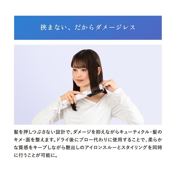 これまでのドライヤーとブラシによるブロー作業と、ストレートアイロンによるスタイリング・艶出し作業がこれ1本で。