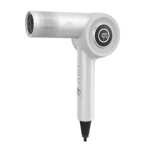 ソリス製ドライヤーの中で最速の風速35m/秒、最軽量の450g(ケーブル含む)。