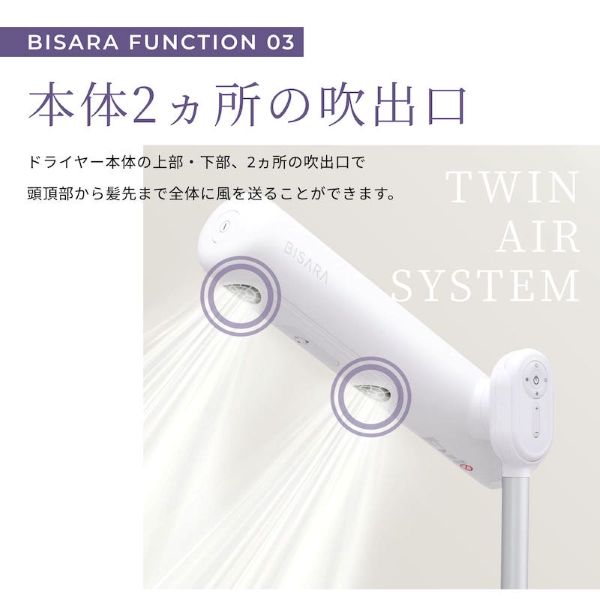 ドライヤー本体の上部・下部に2ヵ所の吹き出し口がある「TWIN AIR SYSTEM」を搭載。