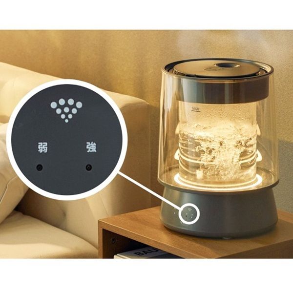 加湿量は「弱」と「強」の2段階調整が可能。お部屋の湿度や使用シーンに合わせて、自由に切り替え可能。