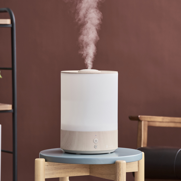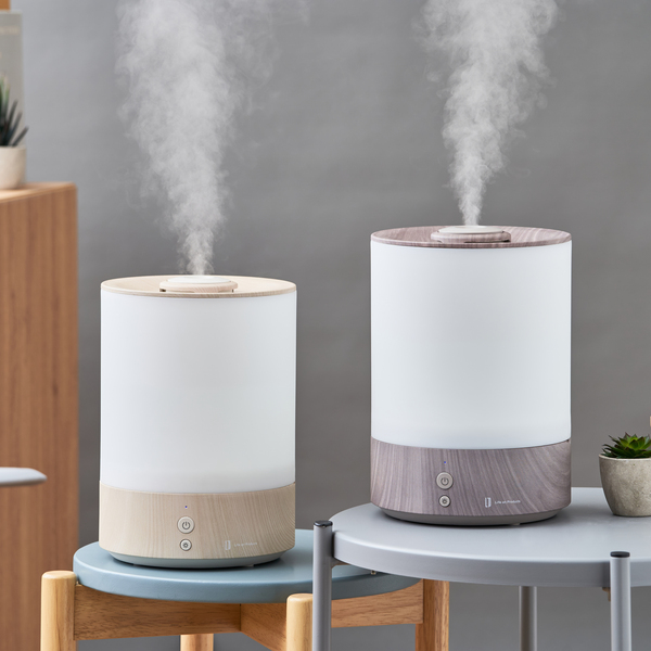 手軽に潤う上部給水式。リアルな木目が魅せる、空間映えするデザイン加湿器。