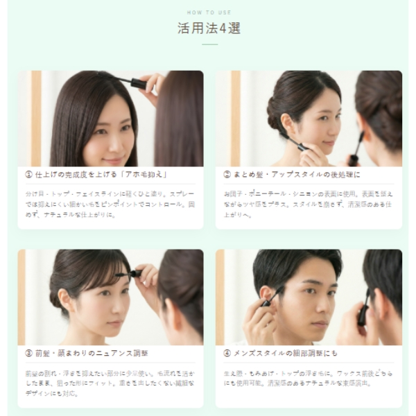 生え際・もみあげ・トップの浮き毛に。ワックス前後どちらにも使用可能。清潔感のあるナチュラルな束感演出。
