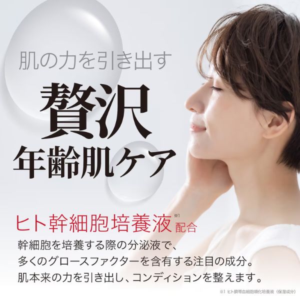 「エクソソーム」配合(ヒトサイタイ血由来幹細胞エクソソーム)で、アンチエイジング、皮膚弾力性、シミ、くすみに。
