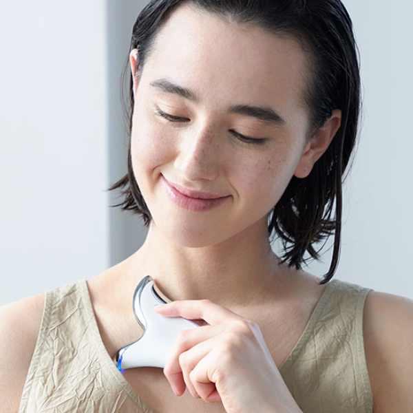 マイクロカレント(微弱電流)と温感機能を組み合わせることで、効率的にフェイスラインを整え、引き締まった潤い肌へと導く。