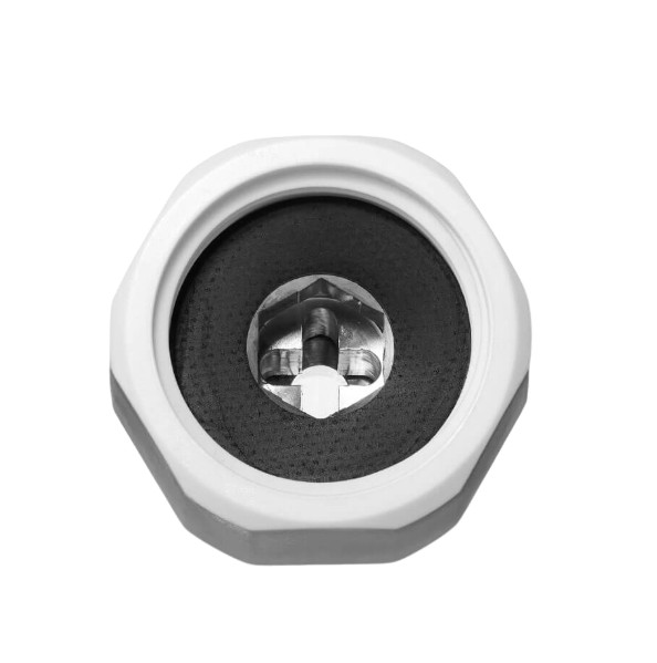 吐出口を十字形にし、水が通り抜ける時に圧力を加えることで、1mlあたり約2.4億個という大量のナノバブルを発生させる(特許出願中)。