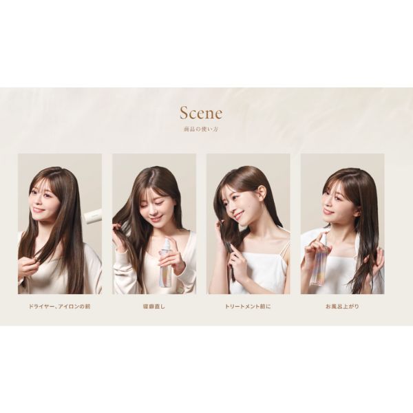 ドライヤーやアイロンの熱を味方につけ、髪の表面に擬似キューティクルを形成。枝毛やパサつきを抑制。