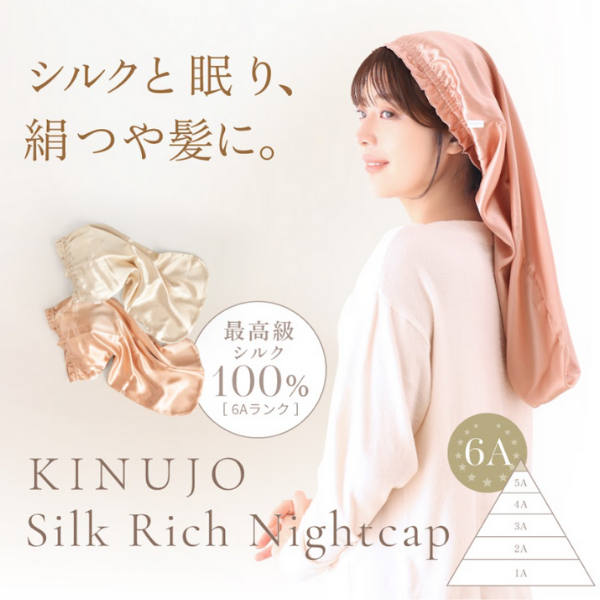吸湿性・放湿性に優れた最高級シルクを使用。蒸れを防ぎつつ、髪と肌の潤いを一晩中キープ。
