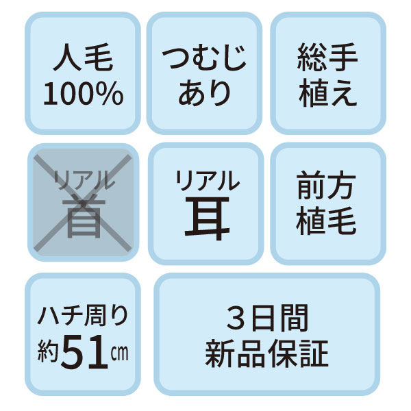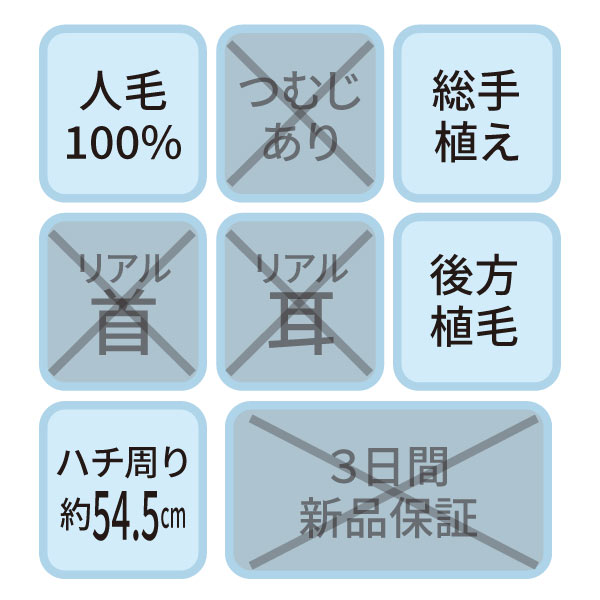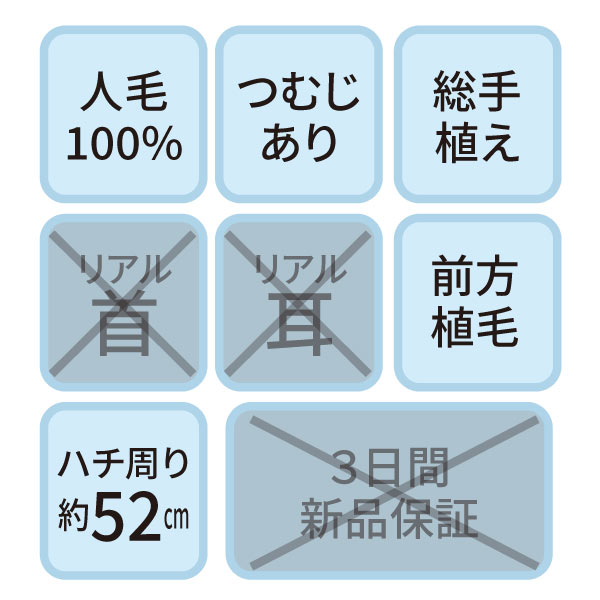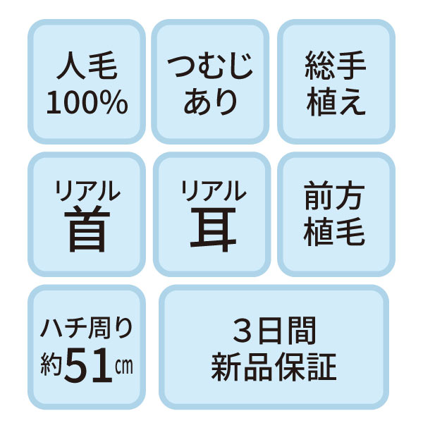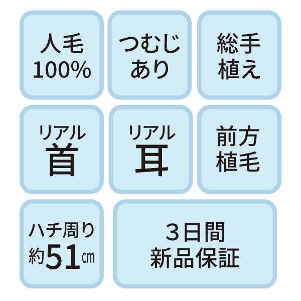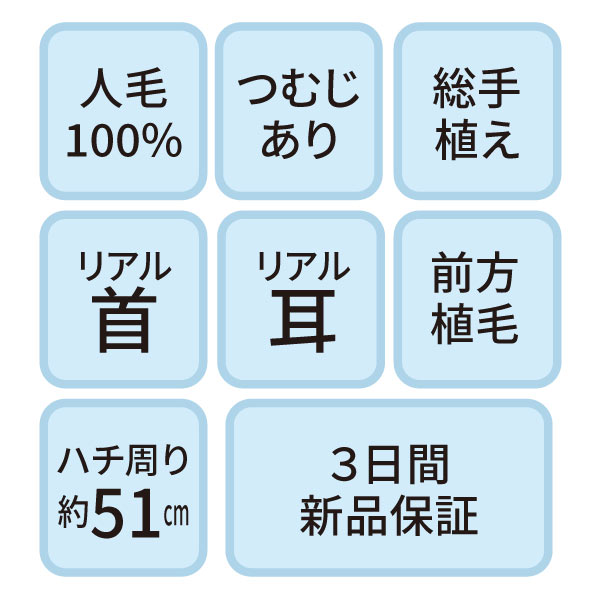 B-07s カットウイッグ (カラー/パーマ対応・人毛100%)【3日間新品保証付】